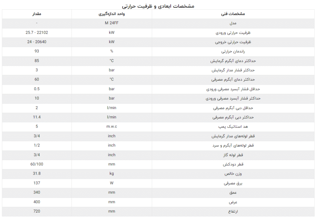 پکیج دیواری | ایران رادیاتور مدل M24FF | رایزر