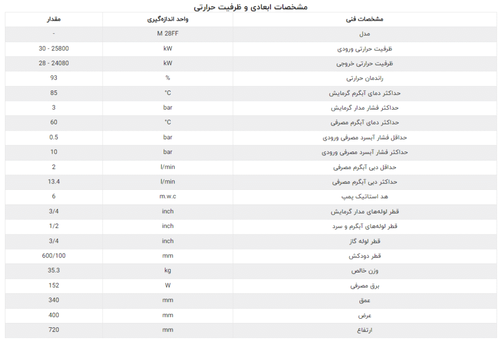 پکیج دیواری | ایران رادیاتور مدل M28FF | رایزر