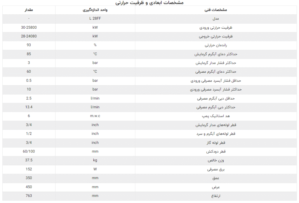 پکیج دیواری | ایران رادیاتور مدل L28FF | رایزر