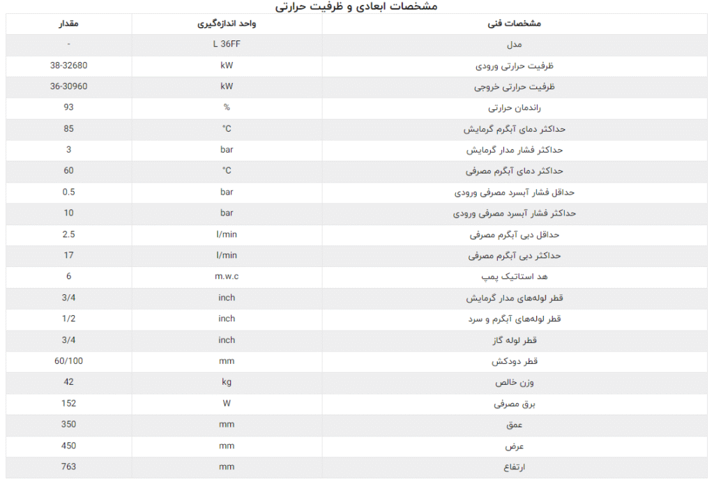 پکیج دیواری | ایران رادیاتور مدل L36FF | رایزر