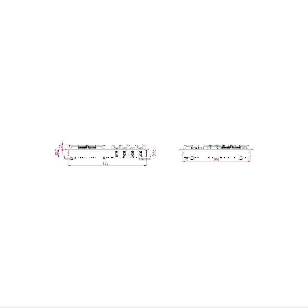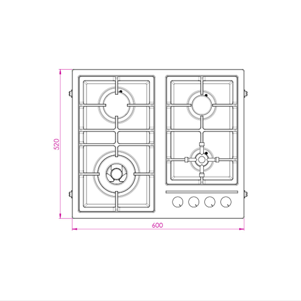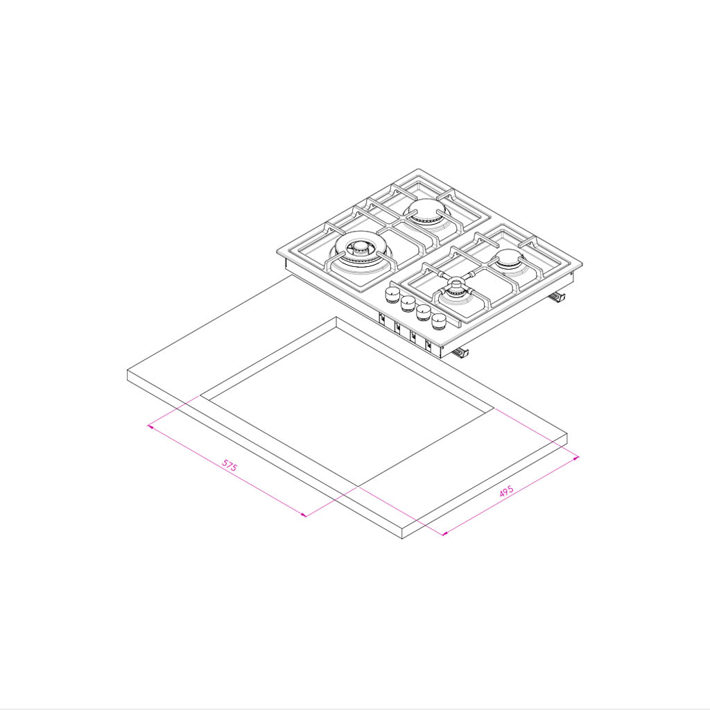 اجاق گاز مدل IS6401 از جنس استیل ضد لک چهارشعله با اشغال کمترن فضا از سطح کابینت در ابعاد 51*62 سانتی متر