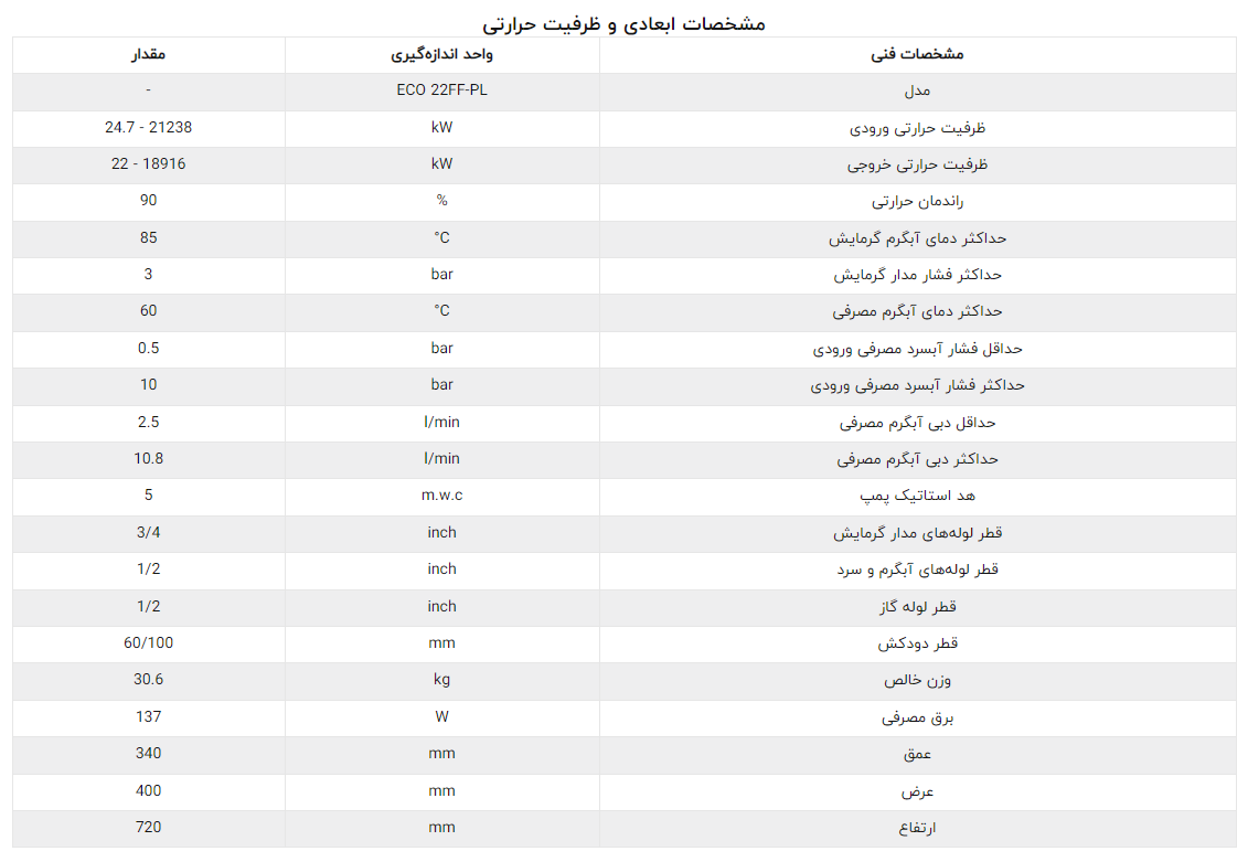 پکیج دیواری | ایران رادیاتور مدل ECO 22FF PL | رایزر